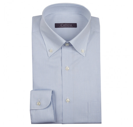 Camicia in puro cotone micro check con taschino. Collo Button down, fit classico con vestibilità comfort e taschino